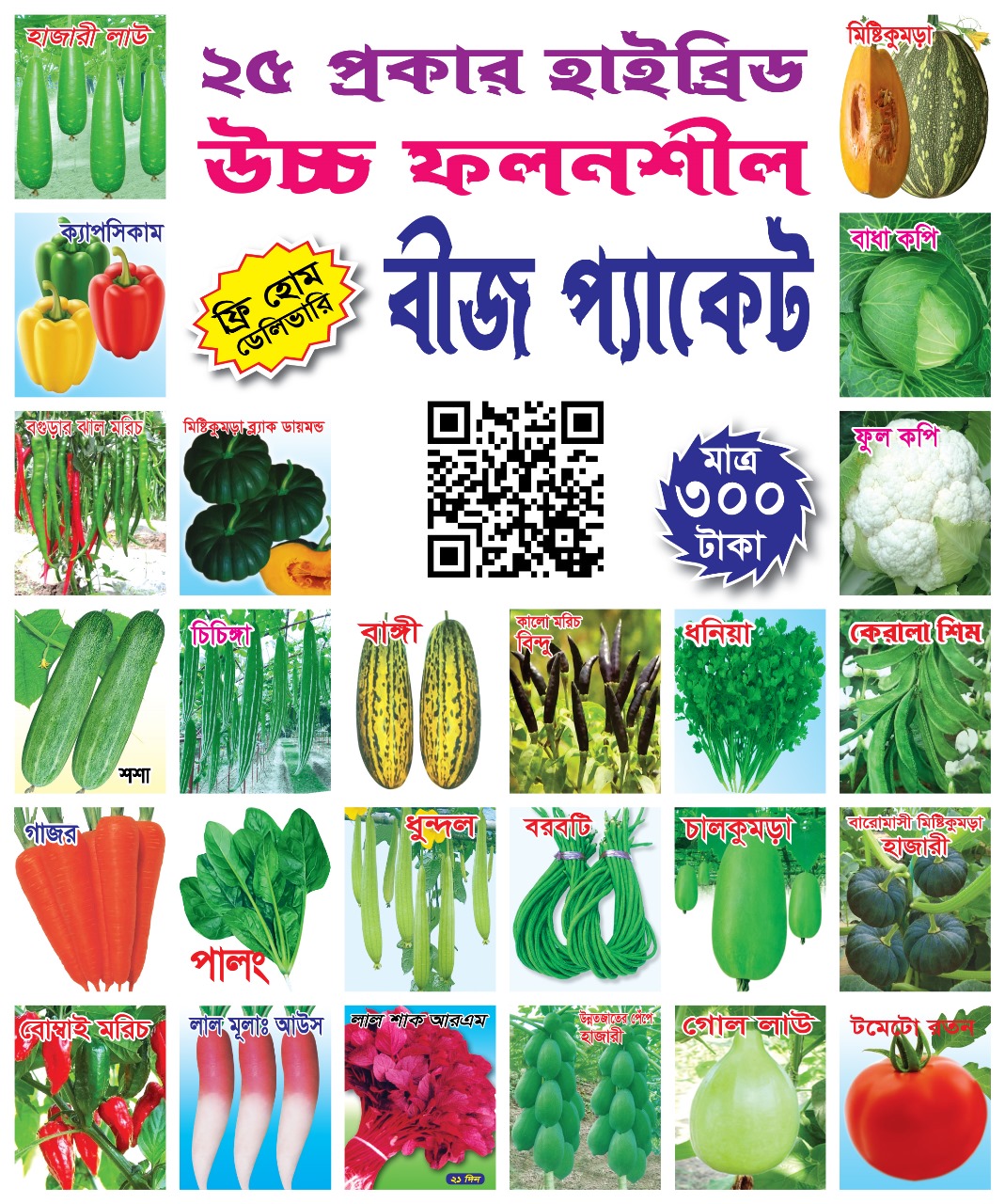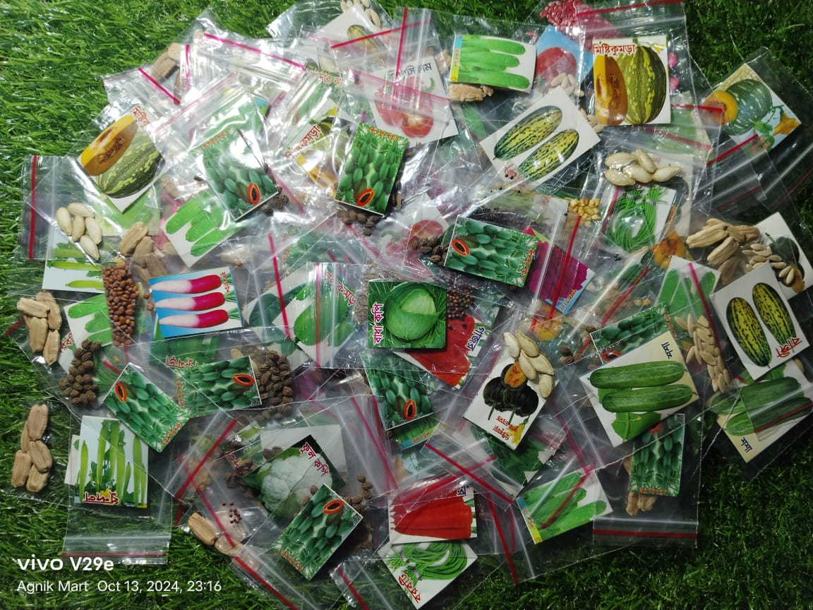 আমাদের ২৫+১ প্রকারের কম্বো বীজ প্যাক আপনার ছাদবাগান বা উঠোনে সহজে ও সফলভাবে শাকসবজি চাষের জন্য আদর্শ। প্রিমিয়াম মানের বীজ, ফ্রি বোনাস বীজ ও স্পষ্ট চাষ নির্দেশিকা সহ, যা আপনাকে প্রচেষ্টা কমিয়ে ভালো ফলন নিশ্চিত করবে। এখনই অর্ডার করুন, ঘরে বসেই স্বাস্থ্যকর সবজি ফলান!
